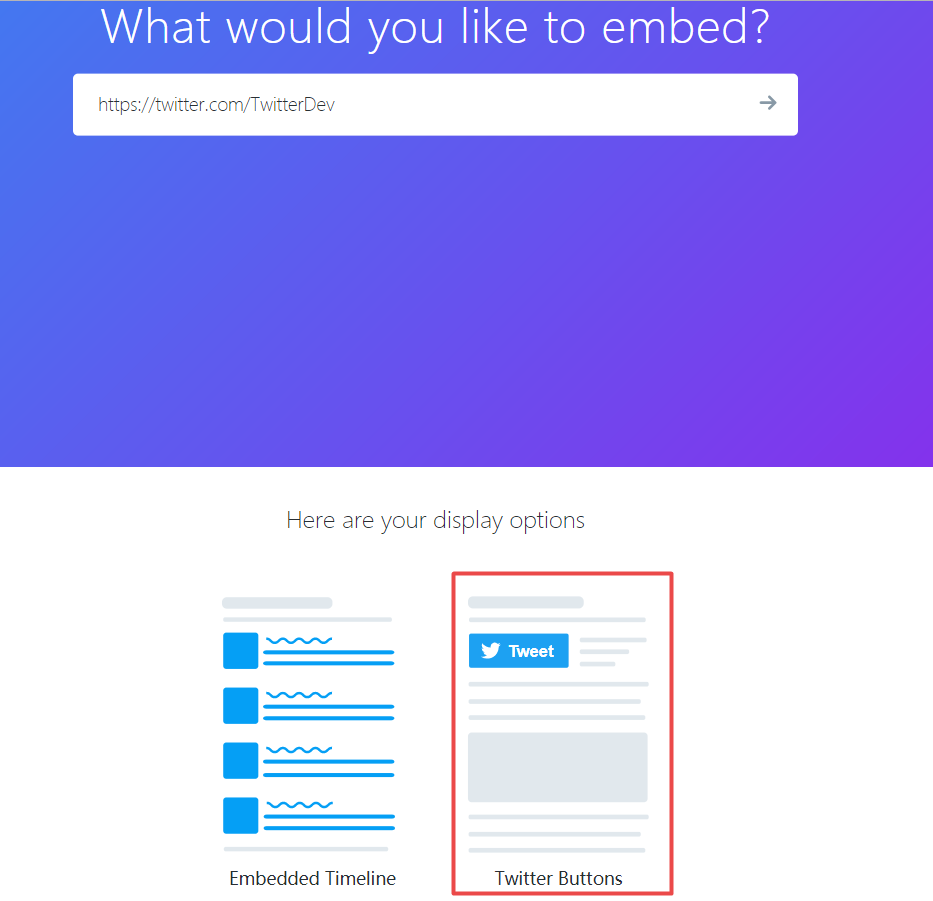 Twitter展示代碼分為三種:嵌入推文、嵌入時間線、嵌入“分享”按鈕、嵌入“關注”按鈕